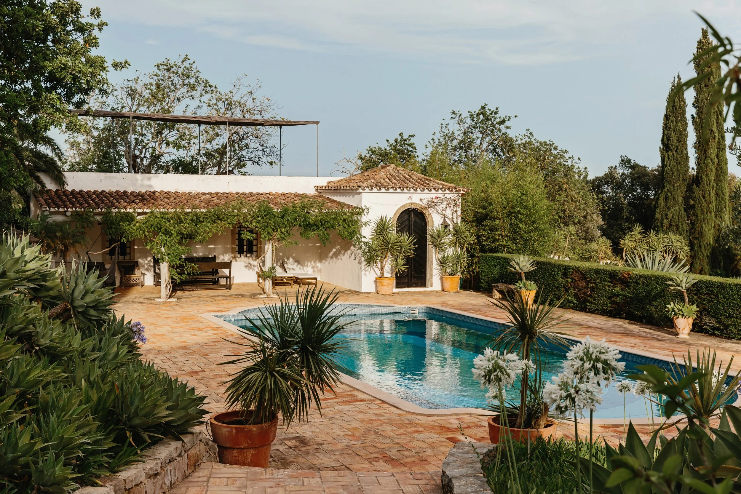 A white and blue palette make the master bedroom a bright and dreamy suite. The private terrace boasts panoramic views towards the nature reserve and garden inducing an ever more elevated state.